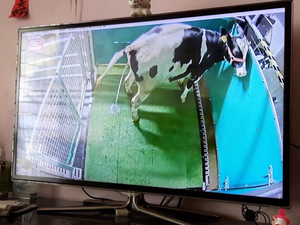 pic里的牛 进入围栏里 释放自己。 青色的地面 是不是让它误以为是草原🌿呢?