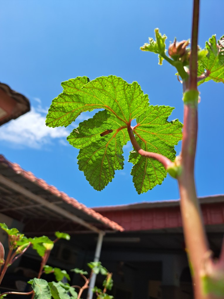 我呢远离喧嚣,看上了外面的阳光、羊角豆和蚱蜢, 良好的关系,各取各有所需。晴空万里,绿意盎然,忙里偷闲。