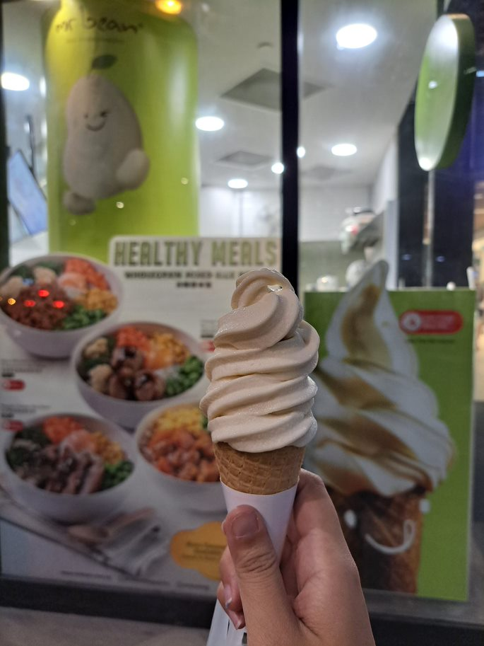终于换到了我想要一尝的mr.bean 豆奶ice-cream,吃起来挺像homesoy的口味,真真假假还有点分不清。 有一点却分得很清,那就是面对无赖customer 的aunty 有点招架不住。