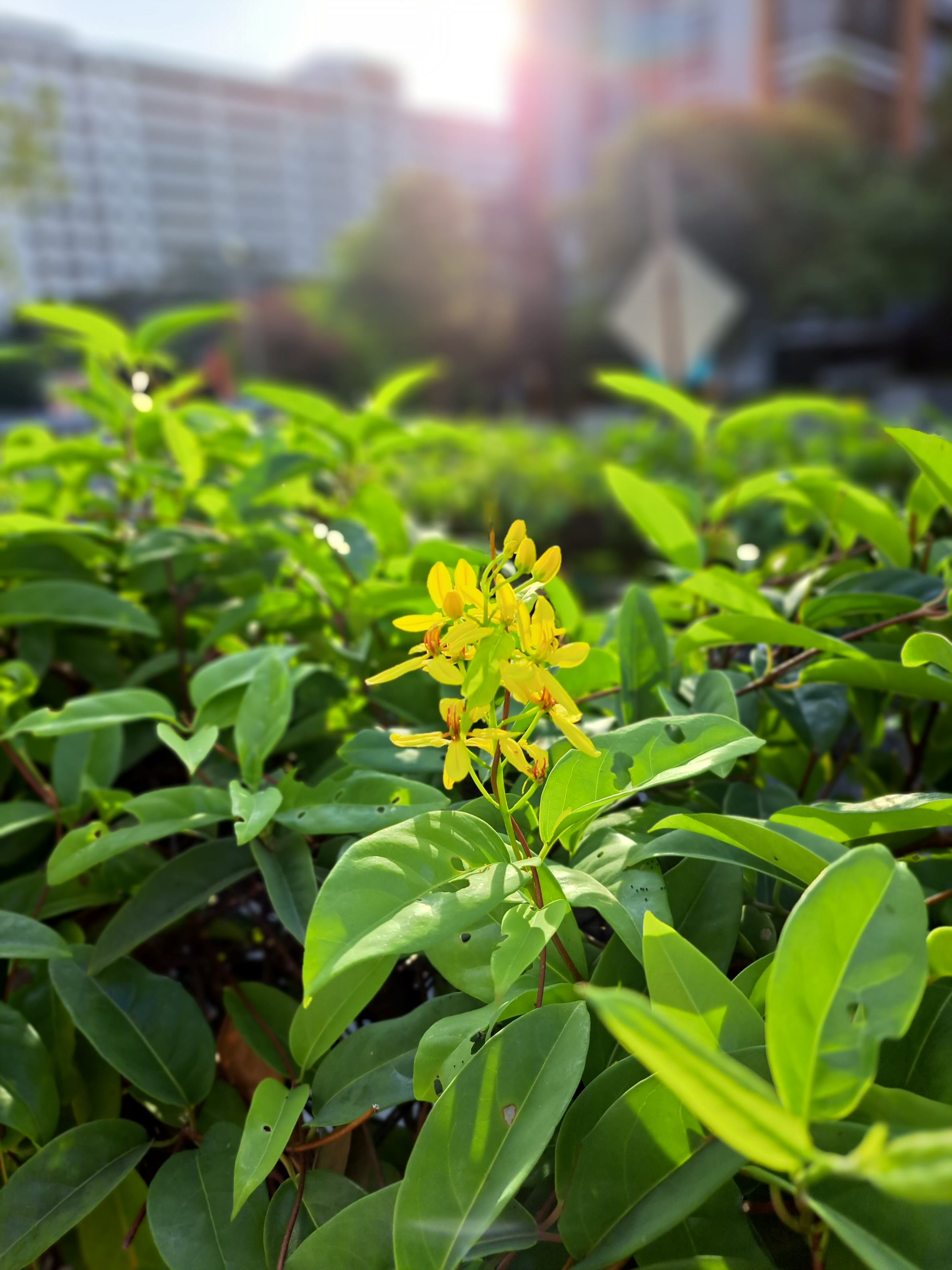 一早出门,让我看到这朵小黄花被眷顾的样子。尽显贵族典范。