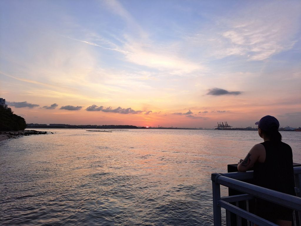 她闯入我的视觉,我的世界。 就这样吧, 把你摄入, 增加画面感。 以后回顾这张照片, 我还会欣慰说这世界还有喜欢夕阳的人。