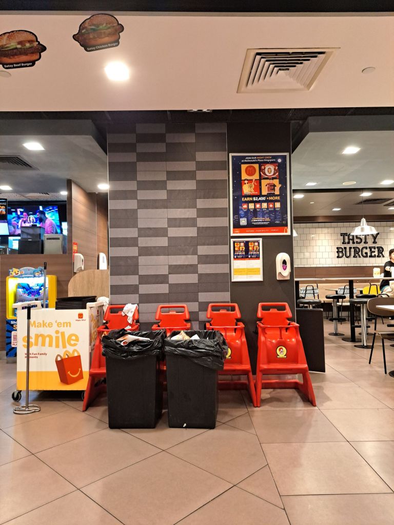 来兴, 我画了这俩个垃圾桶, 来来往往食客们体现公民责任感。 建议背景的婴儿座位装饰我的速写本。