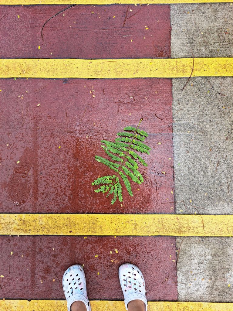我还在路上, 看到它🌿躺着那么刚刚好, 黄线🚧, 红砖🧱,有种简单的美不言而喻。