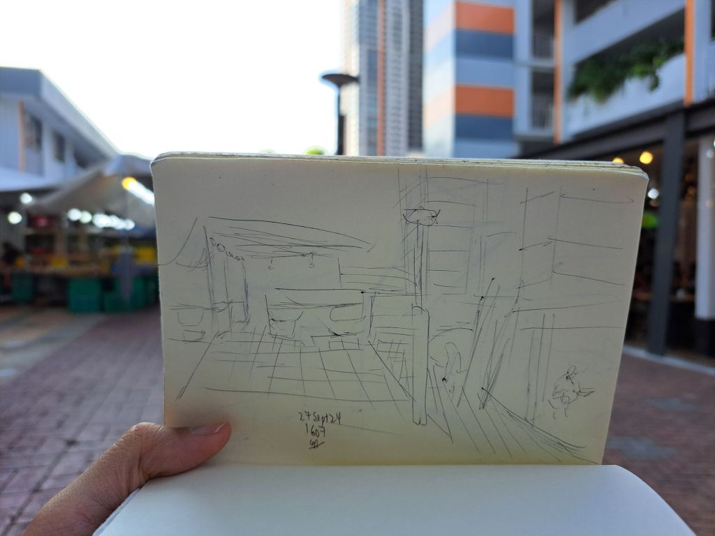 问问学生来过Clementi 吗, 试过户外写生吗。 大多没有。 但是大家都喜欢户外。 我也乘机灌输我的人生观, 多观察和带着速写本到处画, 从小小的景开始培养。