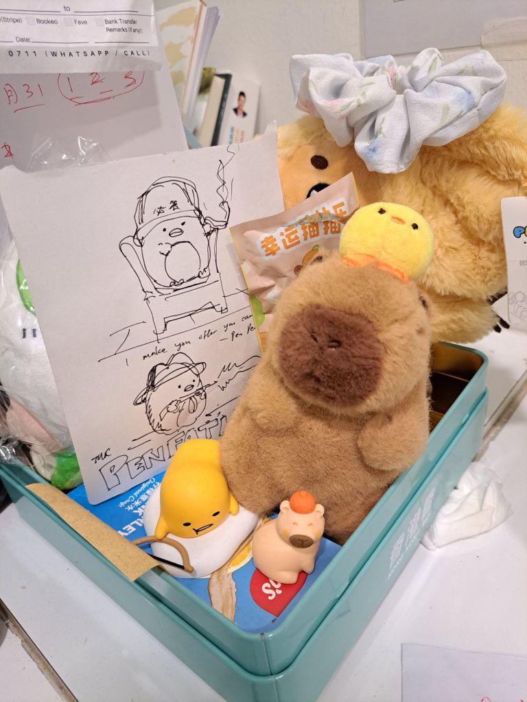 原本我打算谜永远是个谜, 曾经现在和未来。‘’Open la, open la‘ mini boss 捣乱的催我 “its okay la, let it be a mystery la, forever surprise.” ” open and see what do you get”. ” ahh~ okay la, i open la”