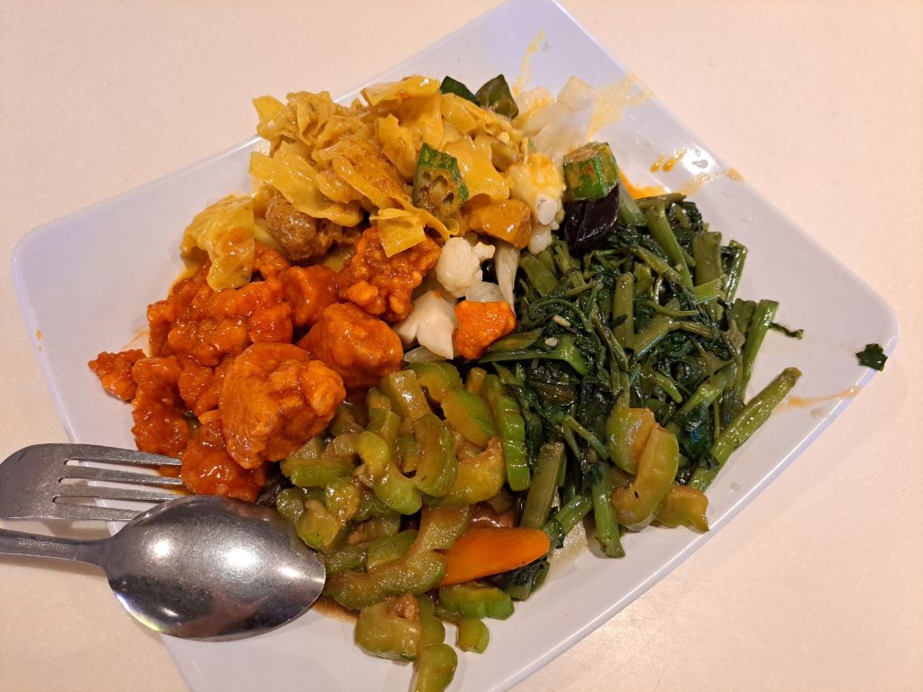 也叫了kangkung, 我知道不值得, 因为便宜, 没必要在这里吃。 我还是叫了。 想到自己如何炒, 放自家辣椒、belacan 、虾米, 大火炒。