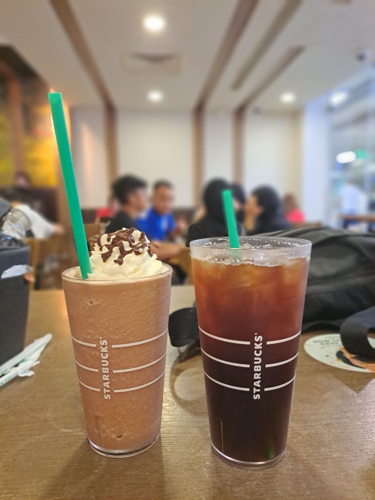 我经不起贪吃诱惑和甜蜜诱惑, 个别叫了猪肠和Peppermint mocha frappuccino with cream. 啊爽~啊甜~。