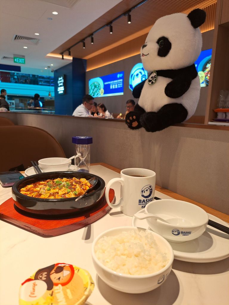 ‘’可以把一个熊猫🐼放过来吗?‘’ 幼稚的我和店员要求。 居然可以呢, 感觉蛮有趣的! 它就这样静静陪我和吴老师和Jade老师午餐。