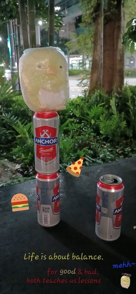 忘了circus 的故事从何说起。 我尝试把Mehmuel 喝空了的Anchor beers 🍺罐叠起来, 把pen² pen pen 放高高, 俯视着人类。