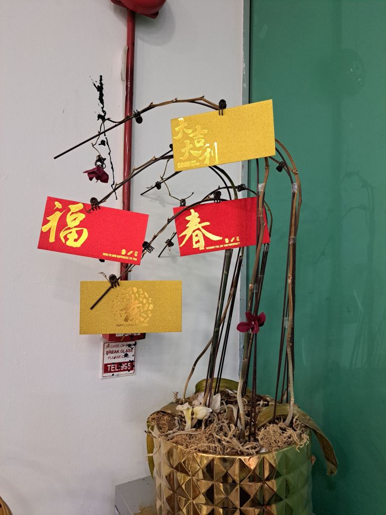 新年红包封特别好看, 感觉我自己也特别有意思, 给自己的小小project, 装饰些年味🧧🌸。 原先的胡姬花枯萎了, 剩下枝和花盆。