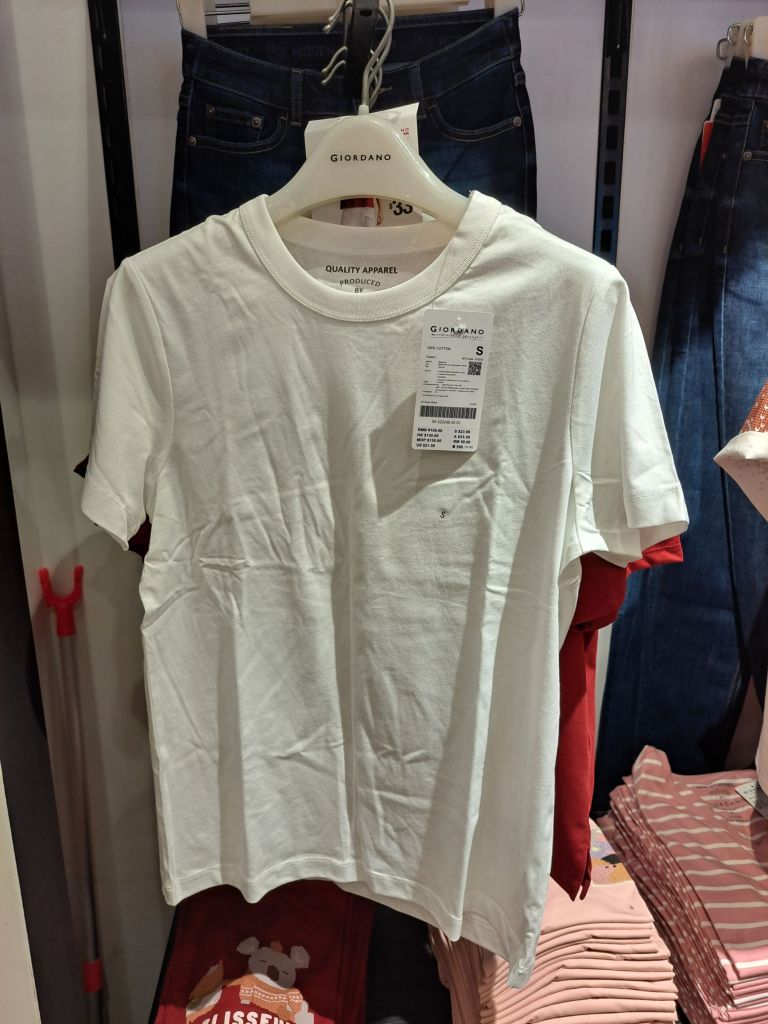 在Giordano 打过part time 工, 但没有尝试明白它们的产品。 不知道有没有kid white plain tshirt 。直到路过Pasir Ris Mall 的, 我就进去好奇的问问, 拍个照做参考。