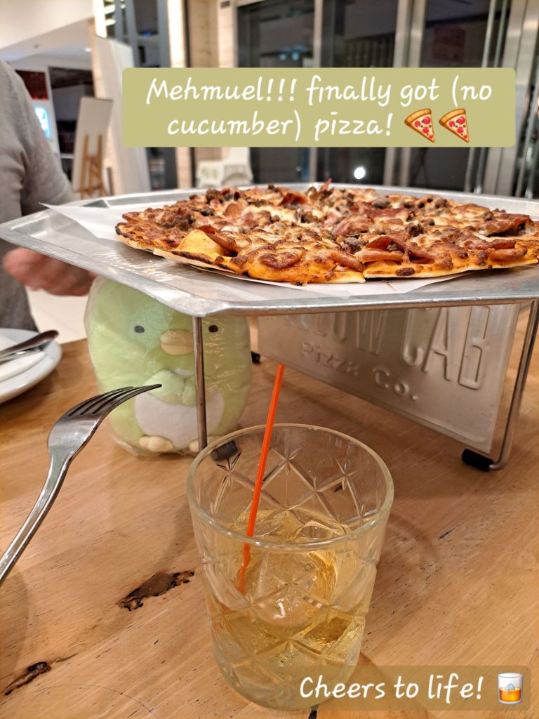 Pen² 终于不用再吃 cucumber pizza 了🥒。但是, 它不知道。 hehe! 😈,这pizza 其实有它的肉成份。 别问我,如何提取的,hehehe!