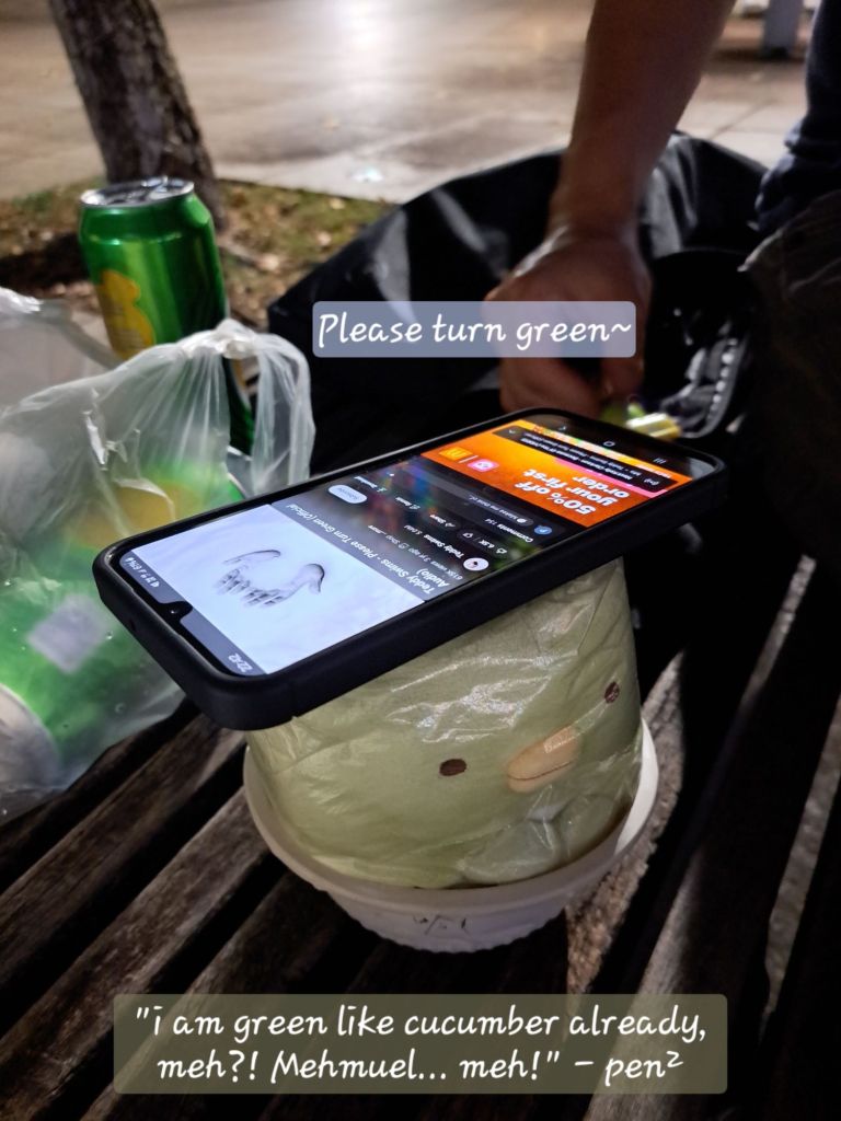 他第一反应就是” turn green? I am already green ” 哈哈, 反应很快, 一下就联想到pen²了。