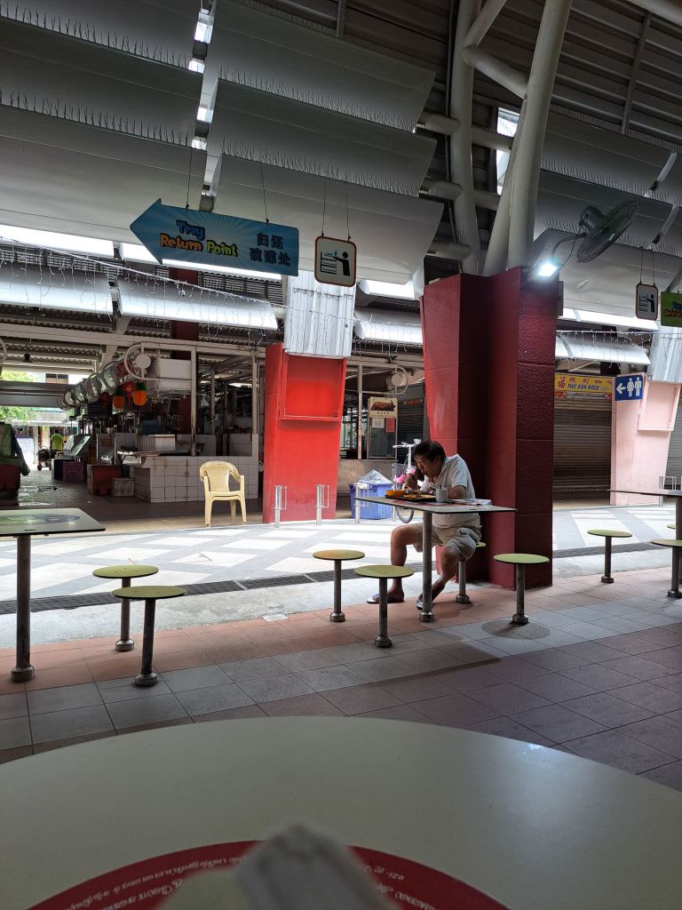 看着他低头看报纸, 出去坐着点根烟, 骑着脚车停下的朋友给他一张纸看, 好奇是什么纸。4D toto 吗? 哈哈。他回来和中学男生斜对面坐着, 嘴很忙。他的孙子吗?哈哈。