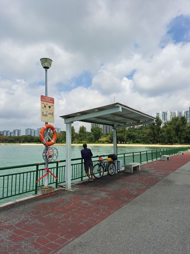 找了个亭子, 脚车和自己倚靠停歇, 遥望远方的东海岸, 思考人生。