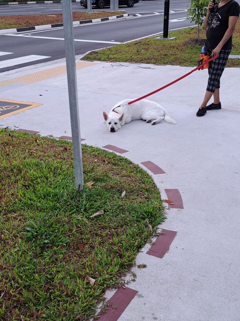 它看来生无可恋了,躺在路中央,和可能是主人可能是女佣的她打着电话。 我好奇到底是谁在等着谁呢?