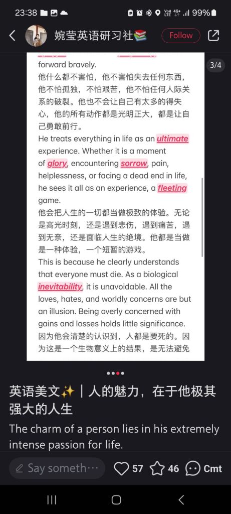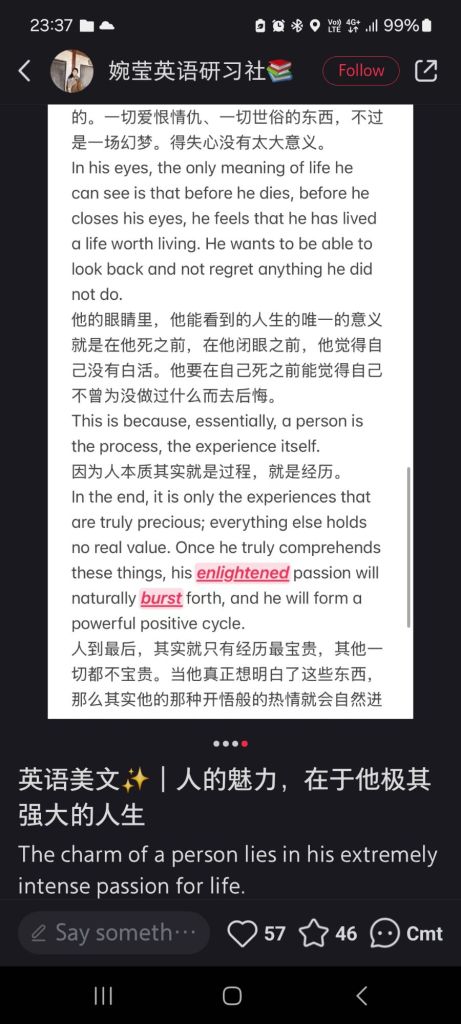文章里的形容, 我实行了后者。 一切都是当下的经历 experience。 只要每一刻都知道自己的感受, be it happy, sad, angry etc, 就好。