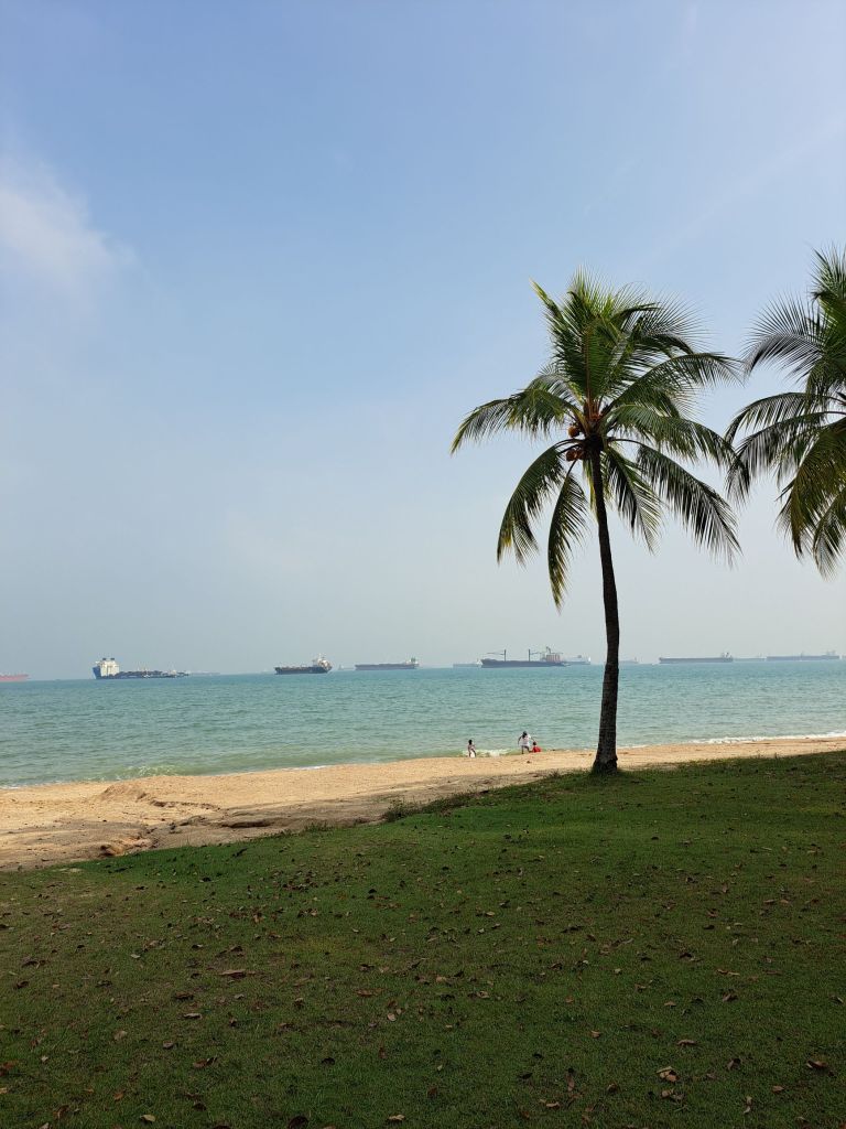 在海边走走, 吹着风徐徐, 看着家庭在沙滩玩沙, 想到看到的照片, 小小的我也和家人们有着简单的快乐。
