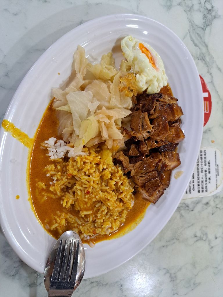 踏入南记Nam Kee, ‘’请问还有辣椒板面吗?‘’。 完了。 ‘’那饭还有吗?‘’有。 ‘’哪个还有‘’。 1,2,6。 我看着板对比了号码和种类。 噢, 居然我的咖喱卤肉饭还有。