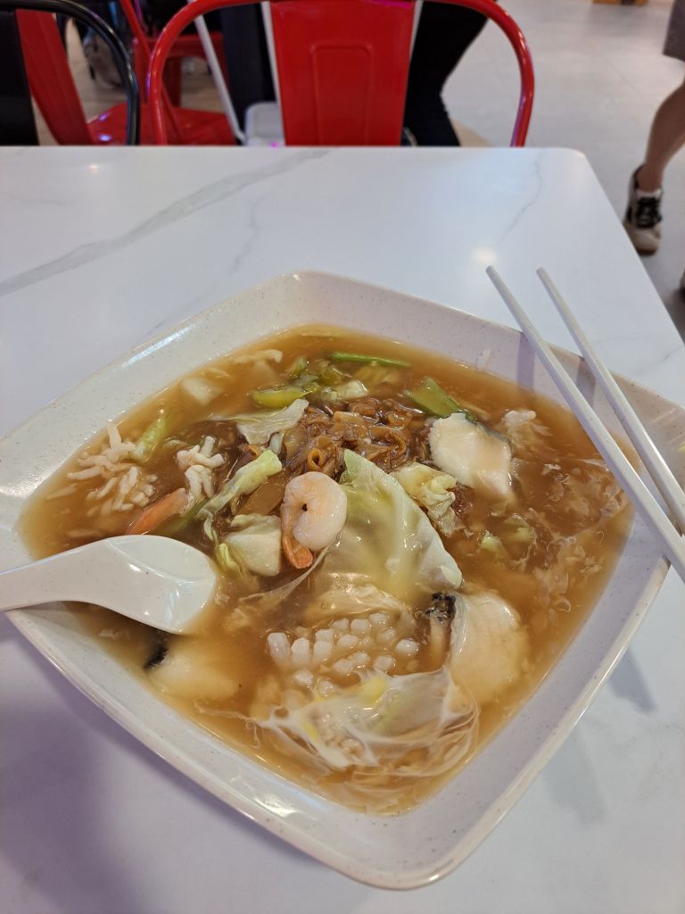 巡了一圈, 看到有杂饭, 鸡饭, Nasi lemak, 煮炒, 麻辣, 日本和韩国餐, 鱼片汤等。
