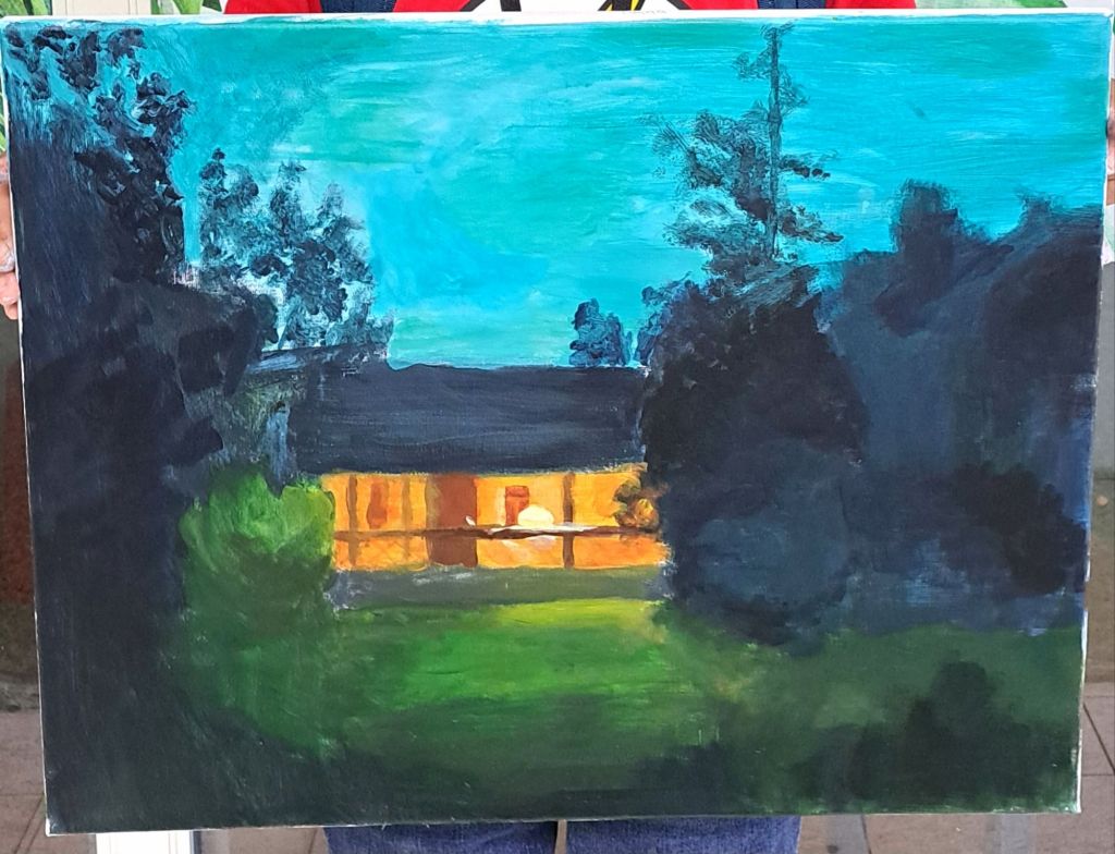 这一张图托寄Mehmuel在学生里看到的艺术爆发力。 的确这颜色我看了也惊艳, 天空有种特别的调色变化。 全都出自学生的笔触和领悟, 这不止是对我来说是个安慰, 对他Mehmuel 也一样。