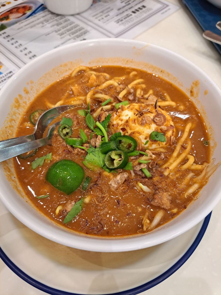 没什么胃口, 可能下午的black pepper chicken chop 饱腹感还在。 叫了碗mee rebus试试, 吃不下briyani的饭。 不过也不错, 新尝试。