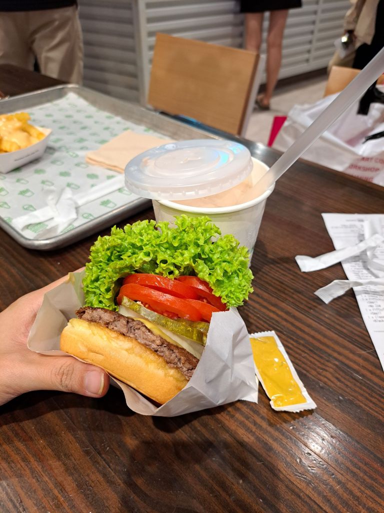 第一次尝试Shake Shack burger 🍔 和chocolate-vanilla milkshake 🍦, 看着络绎不绝的游客和本地人排队进出。 我知道它的魅力在哪了。 新鲜和味道刚好。 的确不错好吃😋。谢谢Ms.I 她的请客。