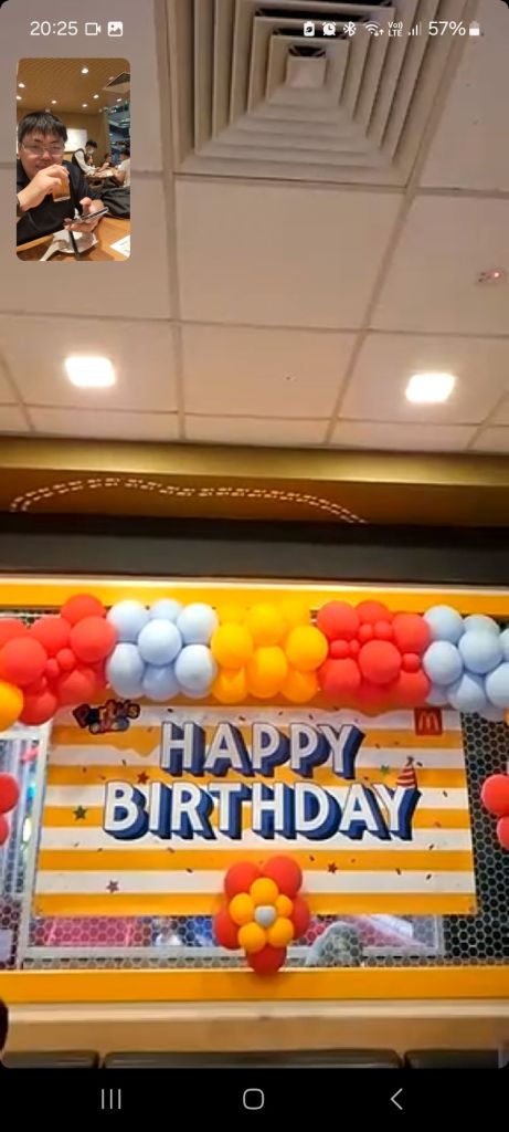 老爸老妈在McD, 隔空祝他生日快乐。我和老哥在Chinatown Point 的鼎太丰晚餐, 请客他生日餐。 祝一切美好。