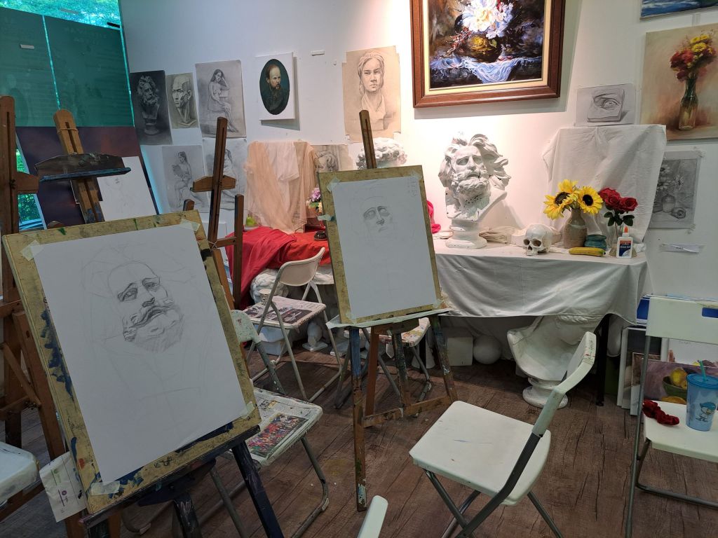 周老师觉得如此的人数让自己难堪, 我就挑战她, 如果她敢教,我就敢学画人像石膏马赛Marseille 。 坐下来, 我给自己一点学习的空间和时间段。 也培养我的虚心, 这一刻我是学生。