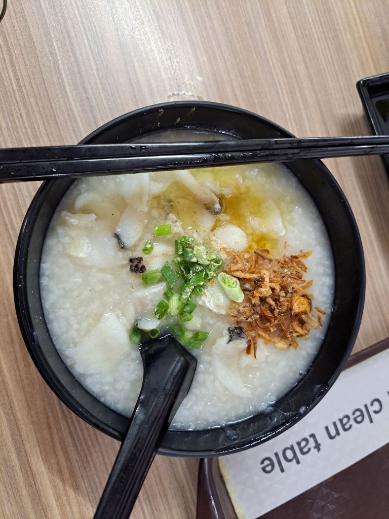 虽然再一次打破我的禁忌, 晚餐吃粥饭面淀粉, 但是不失尝尝粥。 暖暖下胃和来点鱼。 试试新的食物和新的foodcourt。