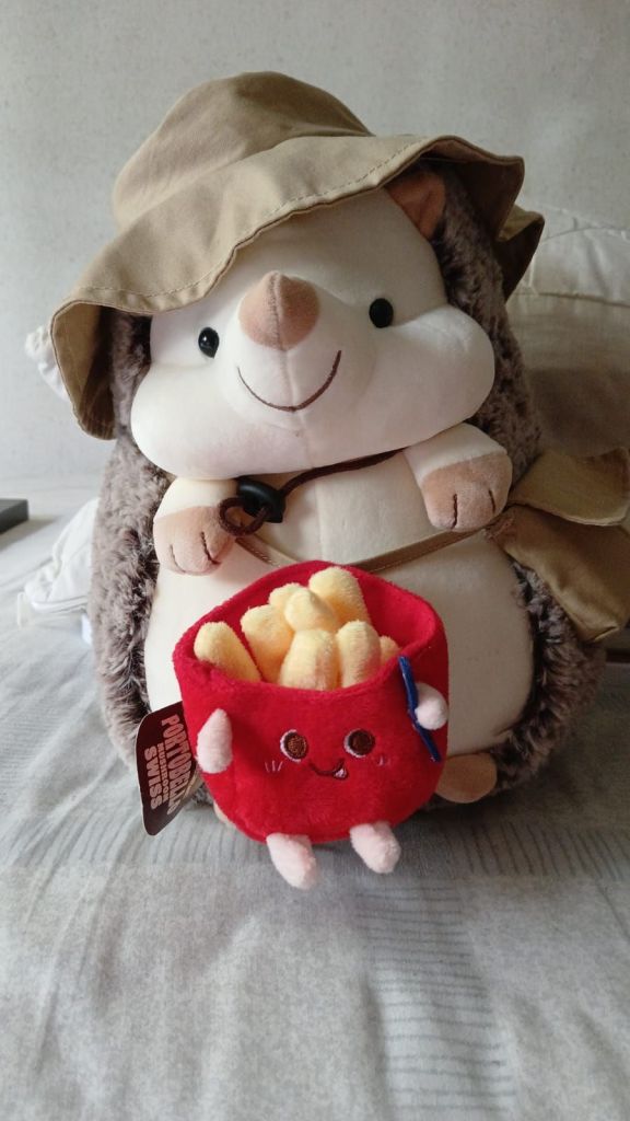 过后让Mehmuel 把pine pine 拍个照来, 我想念它了!没想到他把fryfry 也放过来一起拍了, 哈哈! 光线柔和, 特有种可爱的范畴。 pine~ 🦔🍟