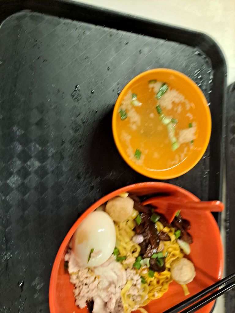 出来买printer ink , 顺便陪Ya Qi午餐, 本来我不吃的, 但是贪吃。 叫了个肉脞面加粒鸡蛋。 不知为何就想加点蛋白质。