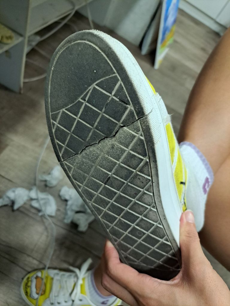 因为egg gor 鞋肮脏了, 我意外发现居然有大的裂痕😳, 怎样来怎样去呢?啊啊啊啊, egg gor 鞋, 我的第一个人生中的sneaker shoe painting, 你不能有事啊!