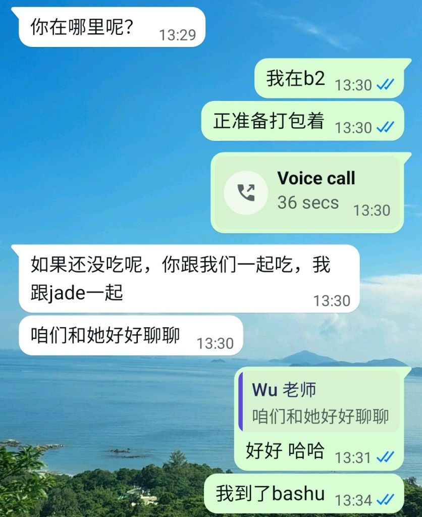 我大概猜到了, 吴老师有意以她的软外交方式, 话中有话给于劝告, 不会显得是以老板的姿态出现,“没有我的命令, 谁也不许换老师”。 我站在中间的调和身份, 缓解气氛 -casual 聚餐。 一位位老师, 轮流上场, 不是上钩, 哈哈哈!