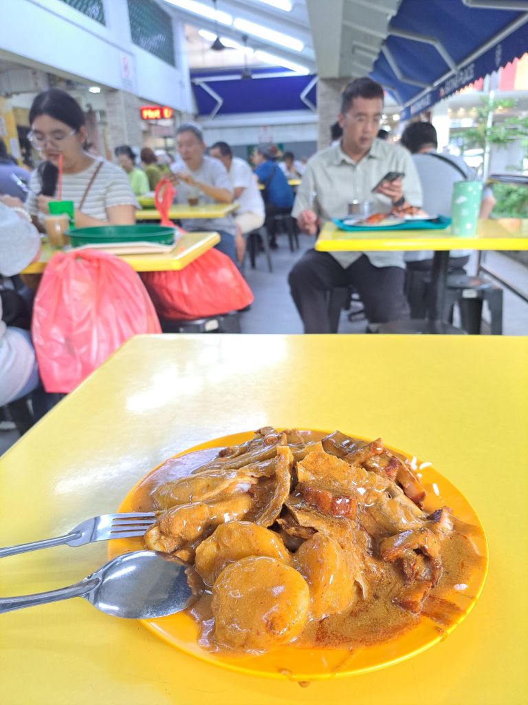 下班后的晚餐, 我只是想吃多点, 饿了一天。 一包Muji的 Earl Grey biscuit 我开封我吃完。 走到我之前路过, 现在想吃的海南咖喱饭档🍛。 和老板娘确认了还有, 说着要少饭, 所有的都要, 咖喱鸡, 马铃薯, 包菜, 煎蛋, 卤肉, 豆干都要。 $8.30 意外的价钱, 不过我愿意接受。 毕竟我就是想吃啊啊啊啊! 感觉盘有多大, 我的胃大小就可以跟着多大。