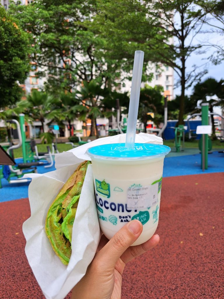 直走,眼见左边有小运动公园, 雨停后的傍晚, 我还是我, 不好意思, 就不想要那么早回家。 喝口Mr. Coconut , 吃个waffle, 开着Youtube,在天空下思考人生。偶尔Youtube ads 扰乱平静, 拉我回来现实。 抬望眼, 半月悄悄不见了。