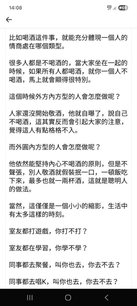 我是外圆内方的人吗? 看情况我觉得我, 该圆时圆, 是方时方。 🔴🟥。