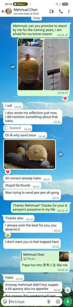 半夜text Mehmuel 说 Mehmuel, can you promise to stand by me for the coming years, i am afraid for no/some reason