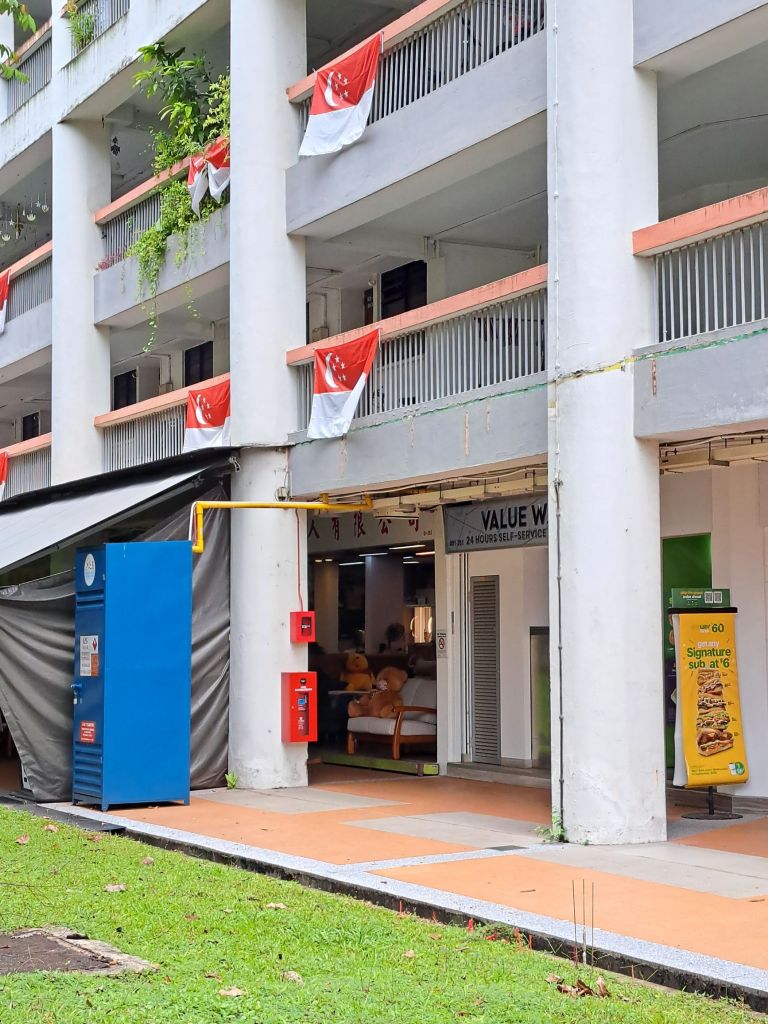 下巴士,前往Yuhua Village Market & foodcentre 前, 一眼望去俩只公仔 🧸🐻 Winnie the Pooh & teddy bear 在坐镇一家家俬店。