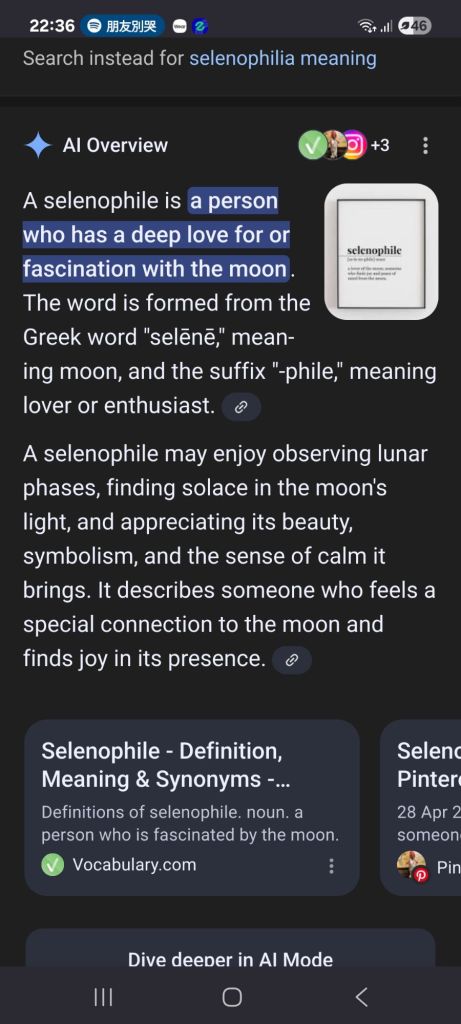 自己也google 何谓selenophile, 更加肯定了自己是个怎样的人。