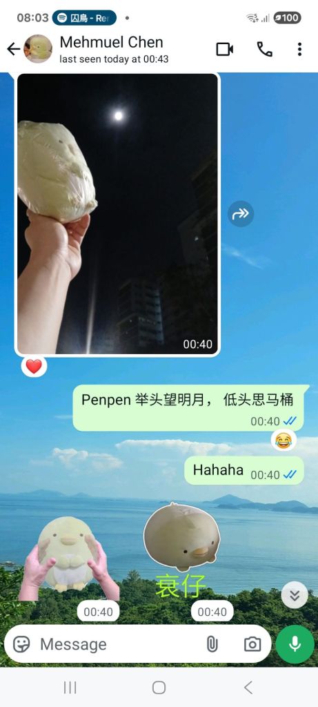 看着他呆滞的眼神, 我用 penpen 安慰他 Mehmuel, dont emo.. , 他说其实不是emo, 而是很累, 睡不好,早起买早餐, 出门教课, 好在于一切顺利。我心想那还好。这又是令人疼惜的人。