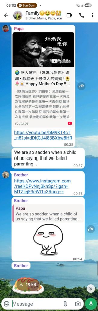 当我看到这文字, 我知道老爸老妈的心很被割, 尤其老爸。 一位和别人家老爸不一样的。