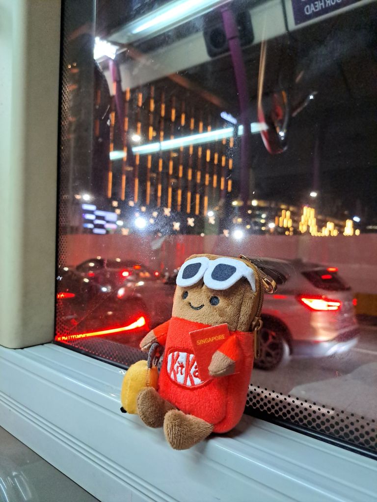 找了个角落, 看来我也是慢慢进化成角落的朋友了。 看着Kitkat bin kitkat, 突然冒出个想法让它坐在窗旁一起游车河, 备着护照和带着行李箱, 随时出发。