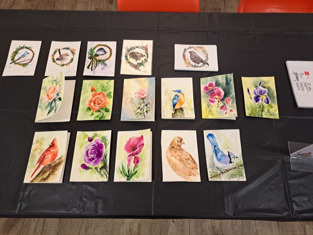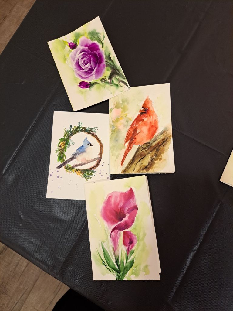 我最后选了这幅 <平安> ㊗️ 给她和这些🌺花鸟🐦。$800 的预算和 $40 4张水彩卡纸