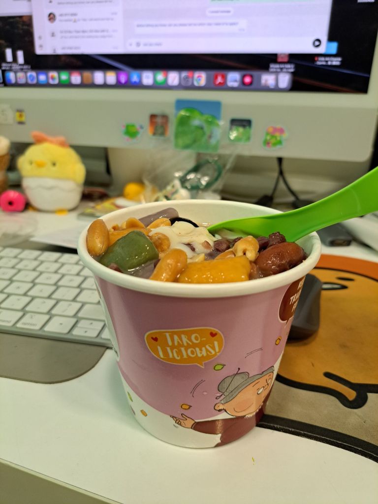 周老师请客2碗 九鲜, 不好意思 我和Jean 说, 我自己要一碗。 不和她share, 让回家睡觉回来教私人课的Ya Qi 跟她share 吧。