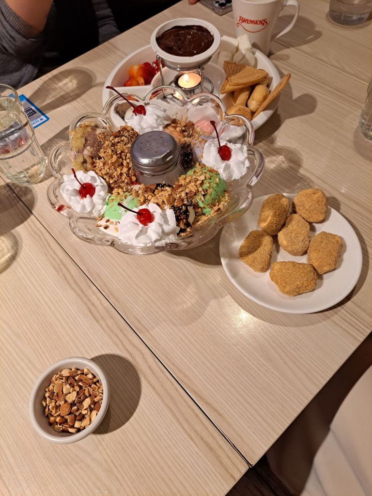 TA们讲, 我一边吃。 是我社交恐惧吧, 可以说如此。 当唱 karaoke的我, 放胆去唱和点了几首, 我这时的遗憾是没点广东歌, 想起<只想一生跟你走>,也没有愿意/可以和我对唱的。 问 Ms. I,还可以再点歌吗?“curfew. 建议Christmas 前再来办一次” ,我听了静静 哈哈, 虽然我期待karaoke, 用歌声折磨TA人。