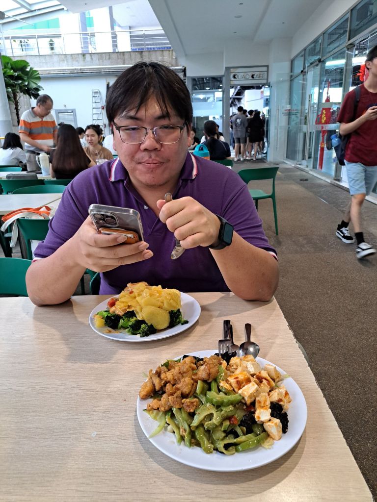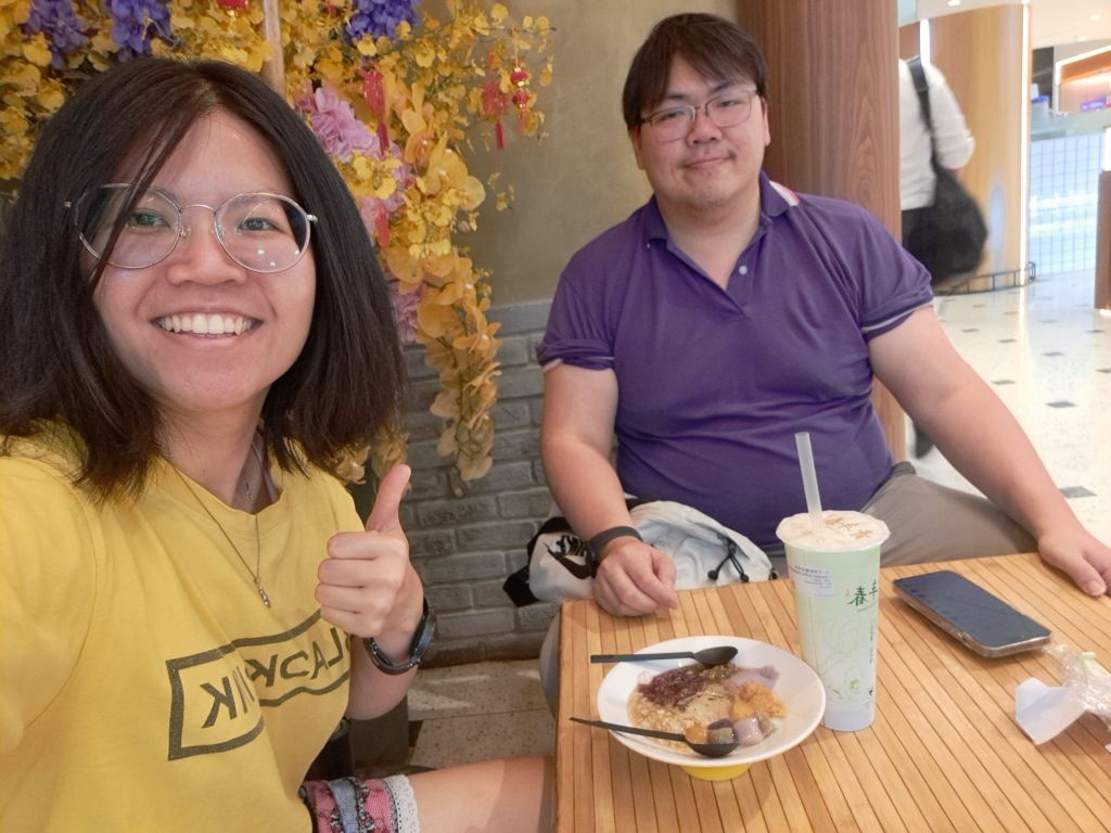 后来老哥吃不饱, 我呢嘴馋跟着老哥的贪吃路线, 领着BobBobmove带来的新年糕饼们一起离开NTU。 在Jurong Point 再续, 哈哈 老哥一杯茶& 我呢一碗杂杂😋。换我请客了。老哥接着买了4粒咖啡面包后走回家, 我呢就往东方去了。东西游记for the day 结束了。