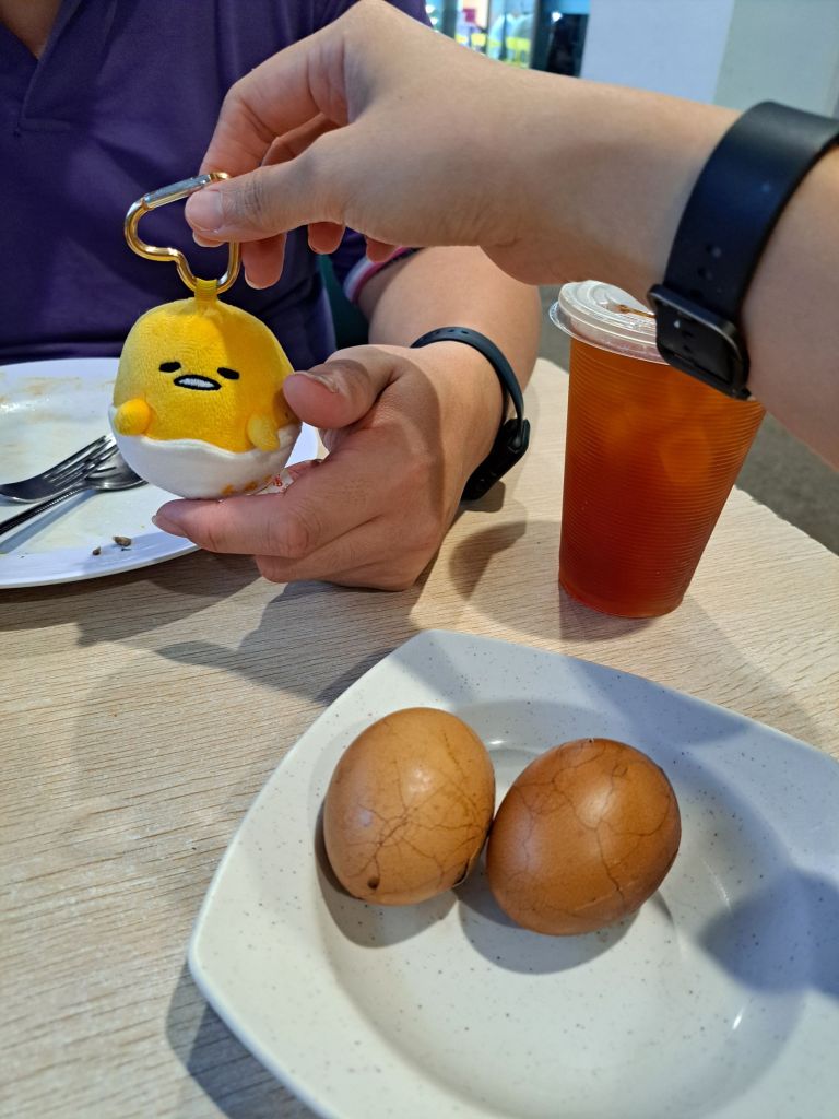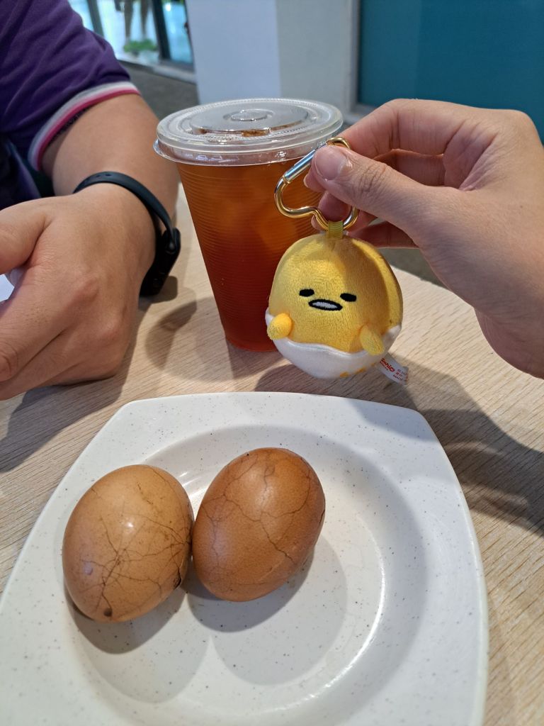 后来老哥自己吃不饱,说叫我去买2粒茶叶蛋和teh o ais。 我以为我听错, 老哥让我找不可能存在的东西。” Hi, do yall sell herbal egg? “我半信半疑地问。 她好像呈现魔术一样, 打开盖 chek cheng! “Woah, wao! Give me 2 and 1 teh o ice less sweet kurang manis”