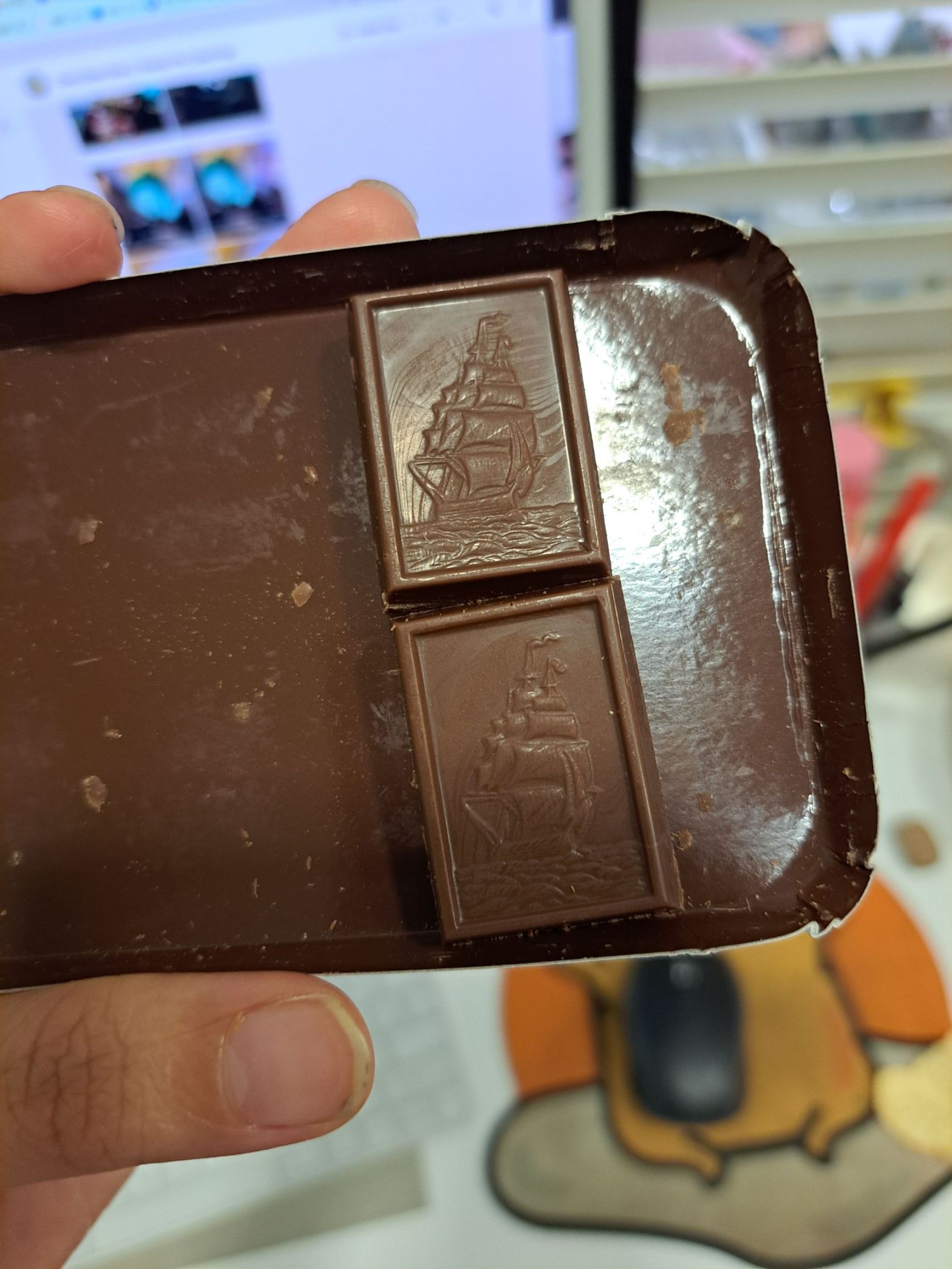 14 Feb’26 1854 ‘’要吗? Olive 的巧克力。 ”- Jean 问我。 我拿过来看一眼, ‘噢, 是船的图形。可以, 我拿一个。 thank you! ‘ 看来当我要画船的时候, 看什么什么都是我要的, 哈哈哈!