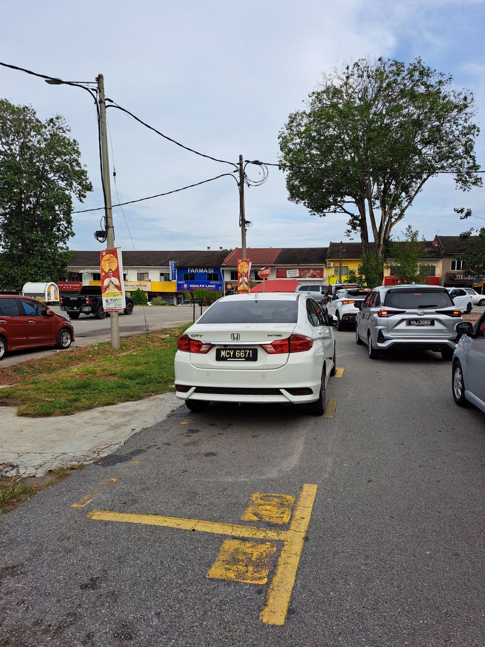 16 Feb’26 0916 佩服我自己的神准, 啊哈哈! park 车在刚刚好的petak 线以内, 这是难得的奇迹, lala~ 😏BearHill 车神就是不一样! 我转的时候和方向那么巧, 天时地利。 载着老妈出来拿烧肉, 拿butter cake, 买包菜、柚子, 新加的celery 番茄。 后来去看看BB Bazaar 的新春装饰再回家 是的, 又一年新年了。